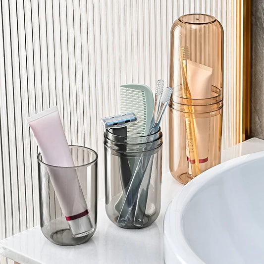 Transparent Toothpaste and Toothbrush Holder - Portable Travel Bathroom Organizer with Wash Cup