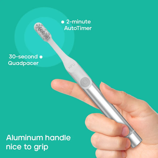 XFU Sonic Electric Toothbrush: Portable for Travel with Dust Cover, Protect Gums, Aluminum Handle (Adult, 1 Electric Toothbrush Handle, 2 Brush Heads)